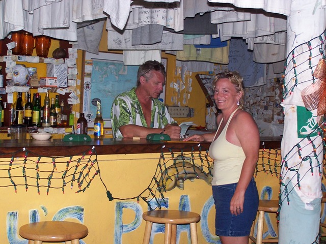 Doug tends bar at Stanley's Love and Peace Bar, Jost Van Dyke |