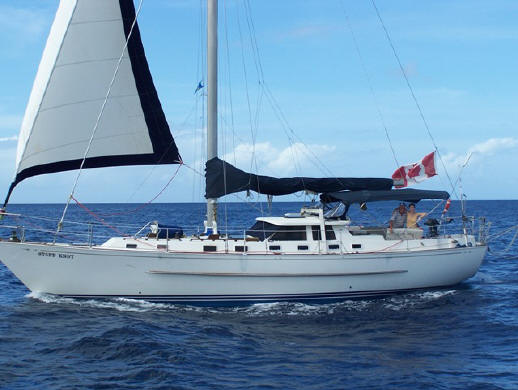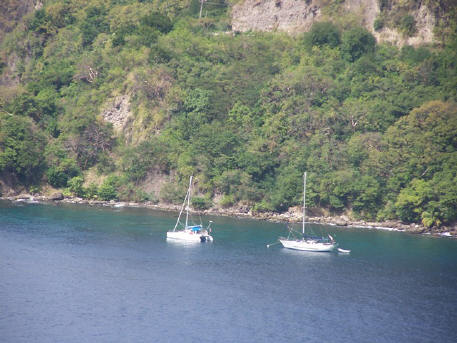 inside of beautiful Marigot Bay, with Kim and Scott on board, and John and