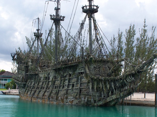 | We find the ghost ship from Pirates of the Caribbean in Lucaya Canal, Grand Bahama Island | We are amazed at the detail that is put into three sides of this ship. The fourth side makes it obvious that it is a prop on a barge |