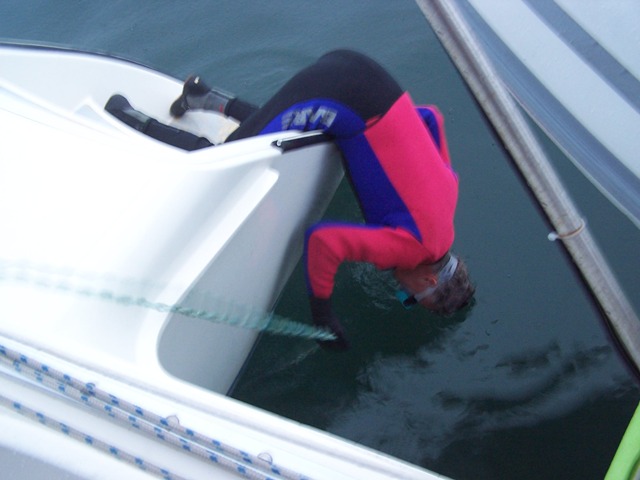 pot lines in our propeller in the Bay of Fundy, Laurie became an expert at