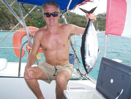 Bequia the Tobago Cays. Catching this fish saved the day for Ron.