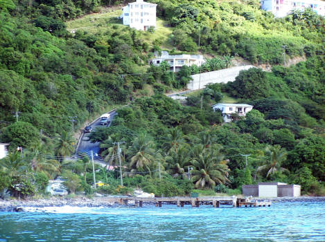 road in Cane Garden Bay, one of our favourite places, if the wind direction