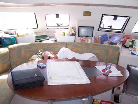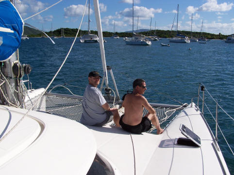 awaiting dropping the anchor after finally arriving in Tortola. The