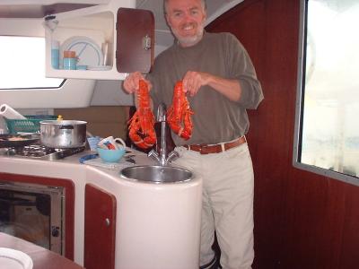 buy 4 lobster, and I reach out far to make safe exchange - toss to John