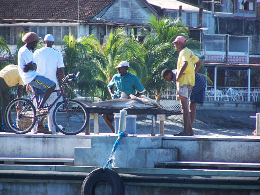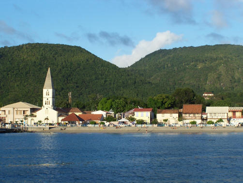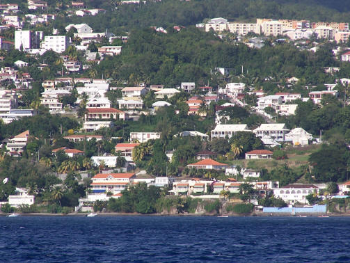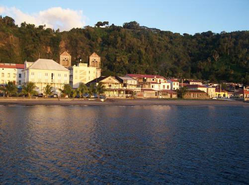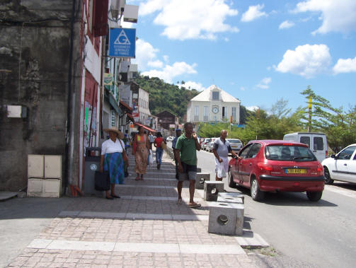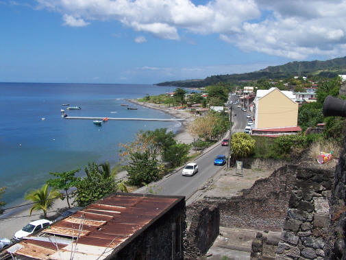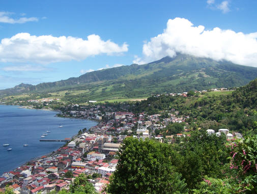 up hill, I was able to take this picture of the town with Mount Pele in the background. Our boat is